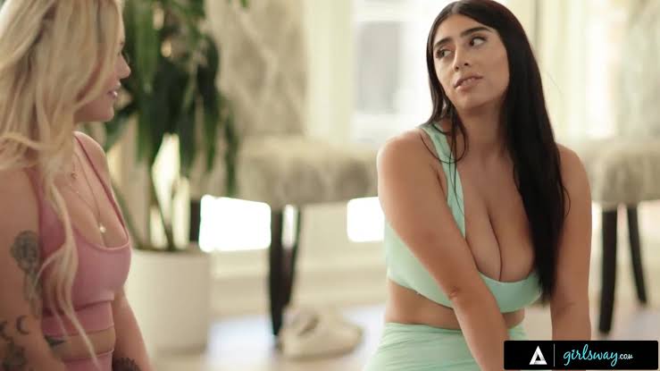 Girlsway, sexy tätowierte Yogalehrerin Kali Roses, knallt die vollbusigen Violet Myers und ihren besten Freund offers 13 minutes of Yoga entertainment. Featuring Violet Myers, the content maintains high production standards throughout.