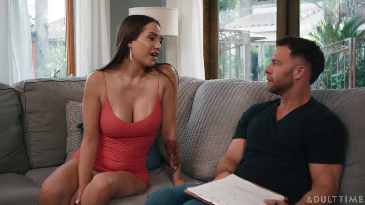 Desiree Dulce plays some porn on her TV. She begins to masturbate while watching the steamy action, squeezing her breasts and rubbing her pussy with growing intensity. Meanwhile, a census taker, Seth Gamble, arrives at Desiree's house and knocks on the front door. Nobody comes to the door, but Seth can hear Desiree panting inside, so he knows someone is home. Determined to get his job done, Seth tries to find another way to get Desiree's attention. While Desiree is energetically thrusting her fingers in and out of her hole, Seth finds an unlocked door at another part of the house, and ends up getting an eyeful! Desiree is shocked, but Seth says he just has to ask her a few questions for the census. The first few questions turn out to be boring, and Desiree is still horny from touching herself, so she offers to answer the rest of Seth's questions AFTER they have sex!